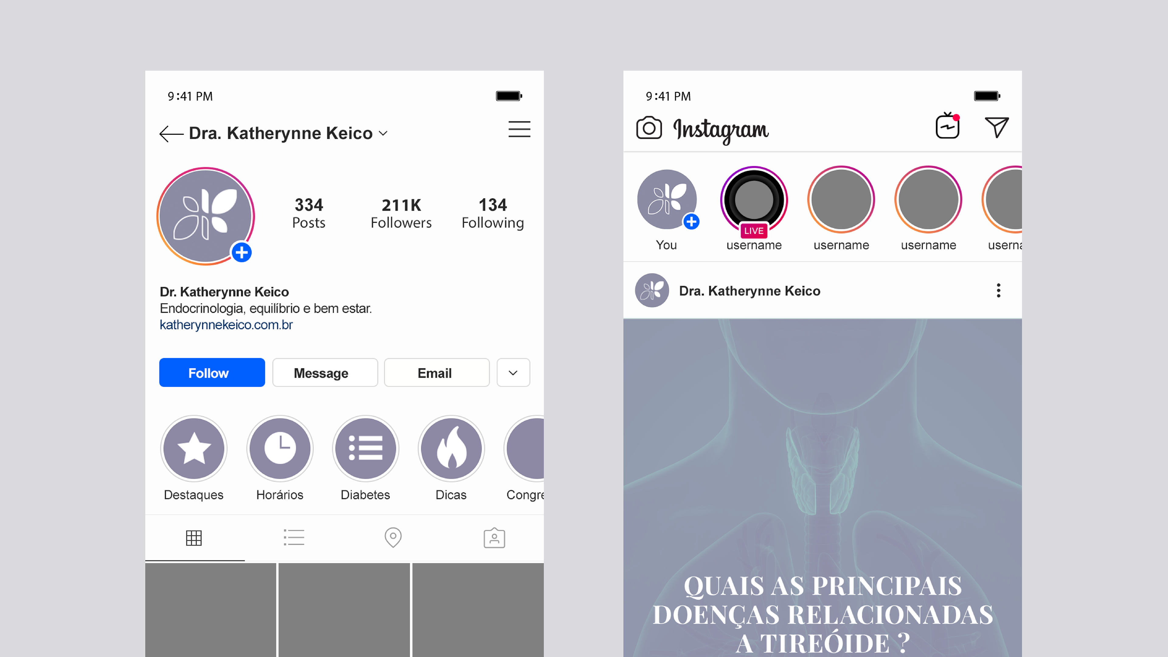 A paleta em tons suaves e sofisticados reforça a percepção de cuidado e acolhimento, enquanto a tipografia equilibra autoridade médica com proximidade humana.